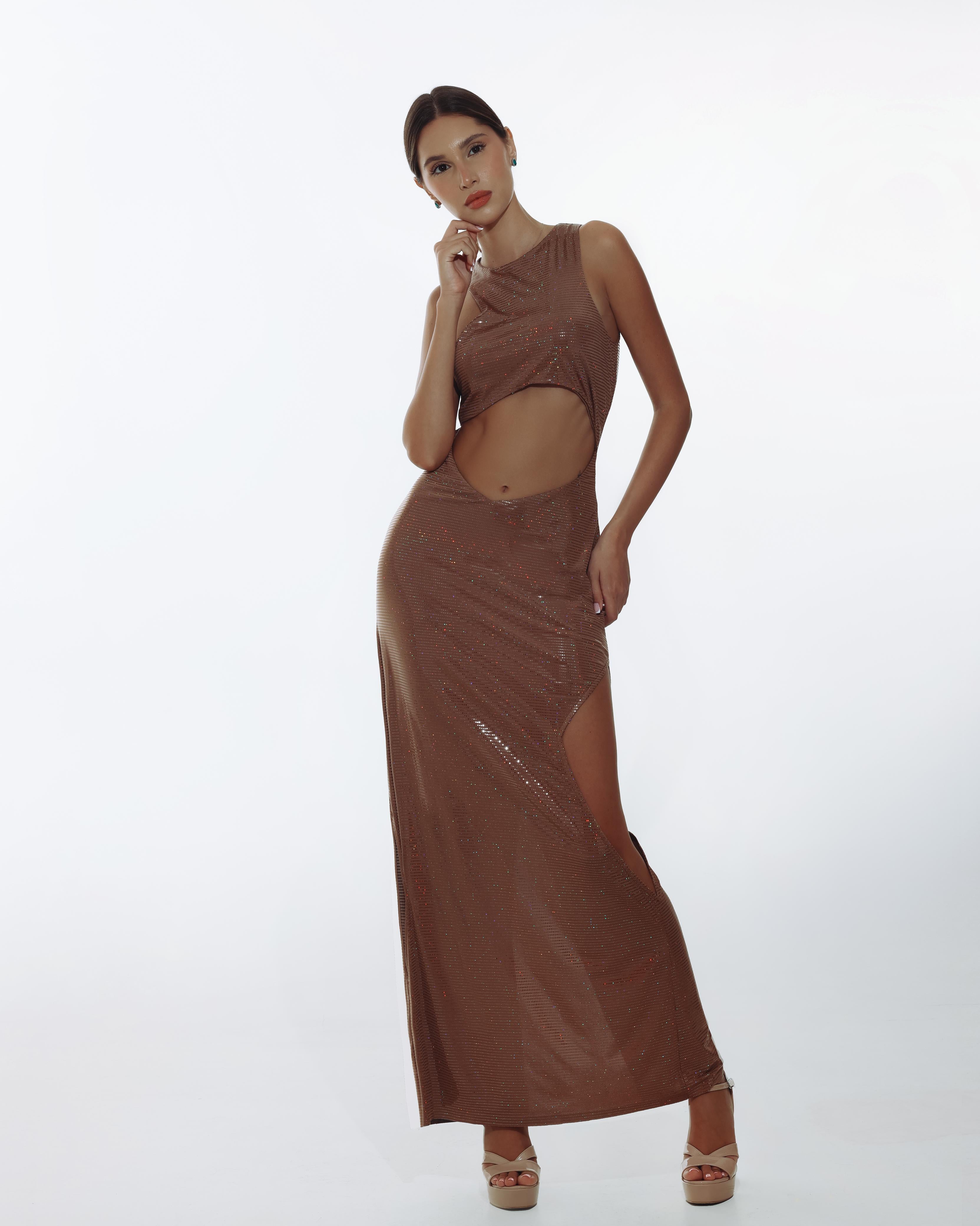 NORA HIGH SHINE METALLIC PURPLE DRESS