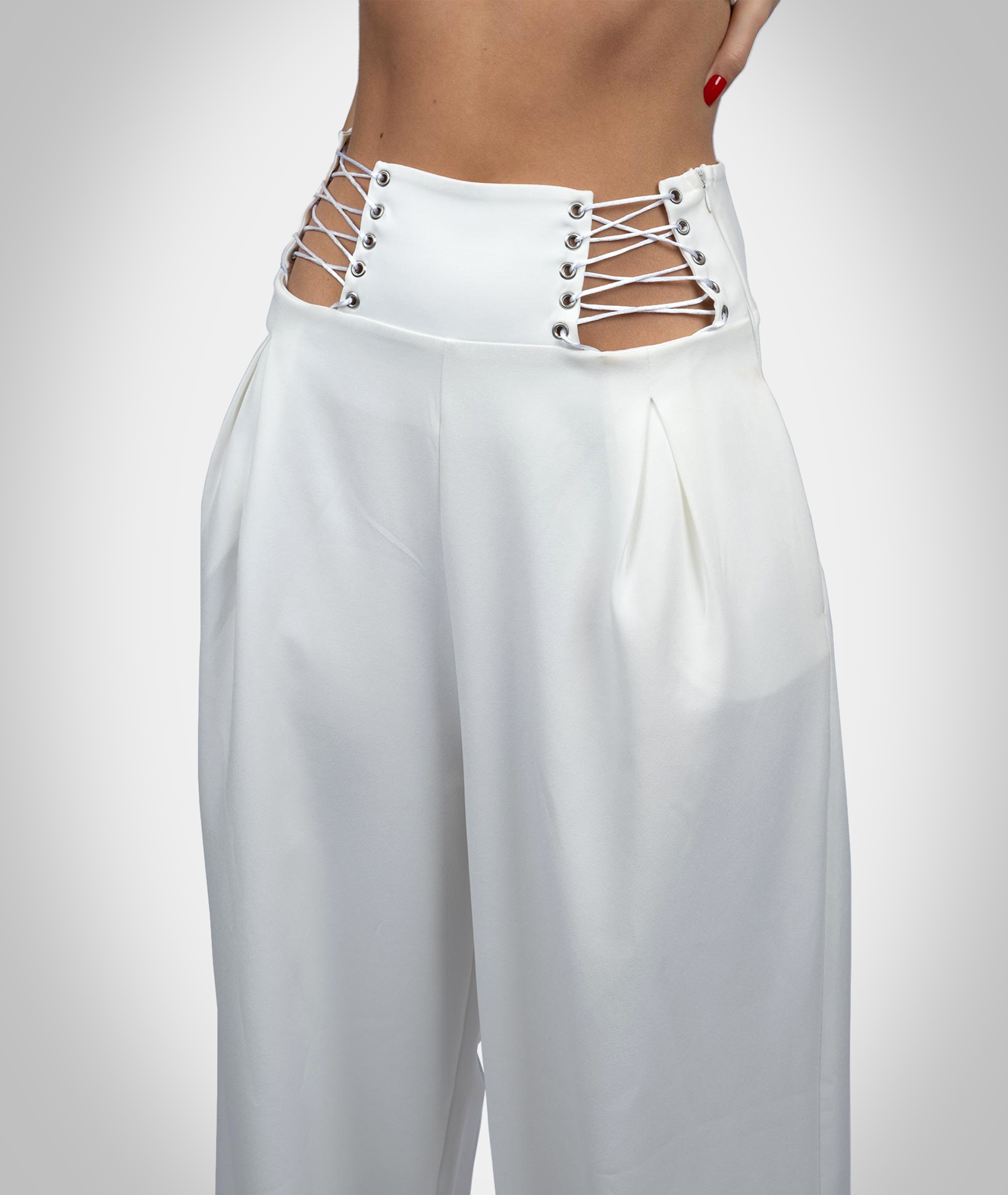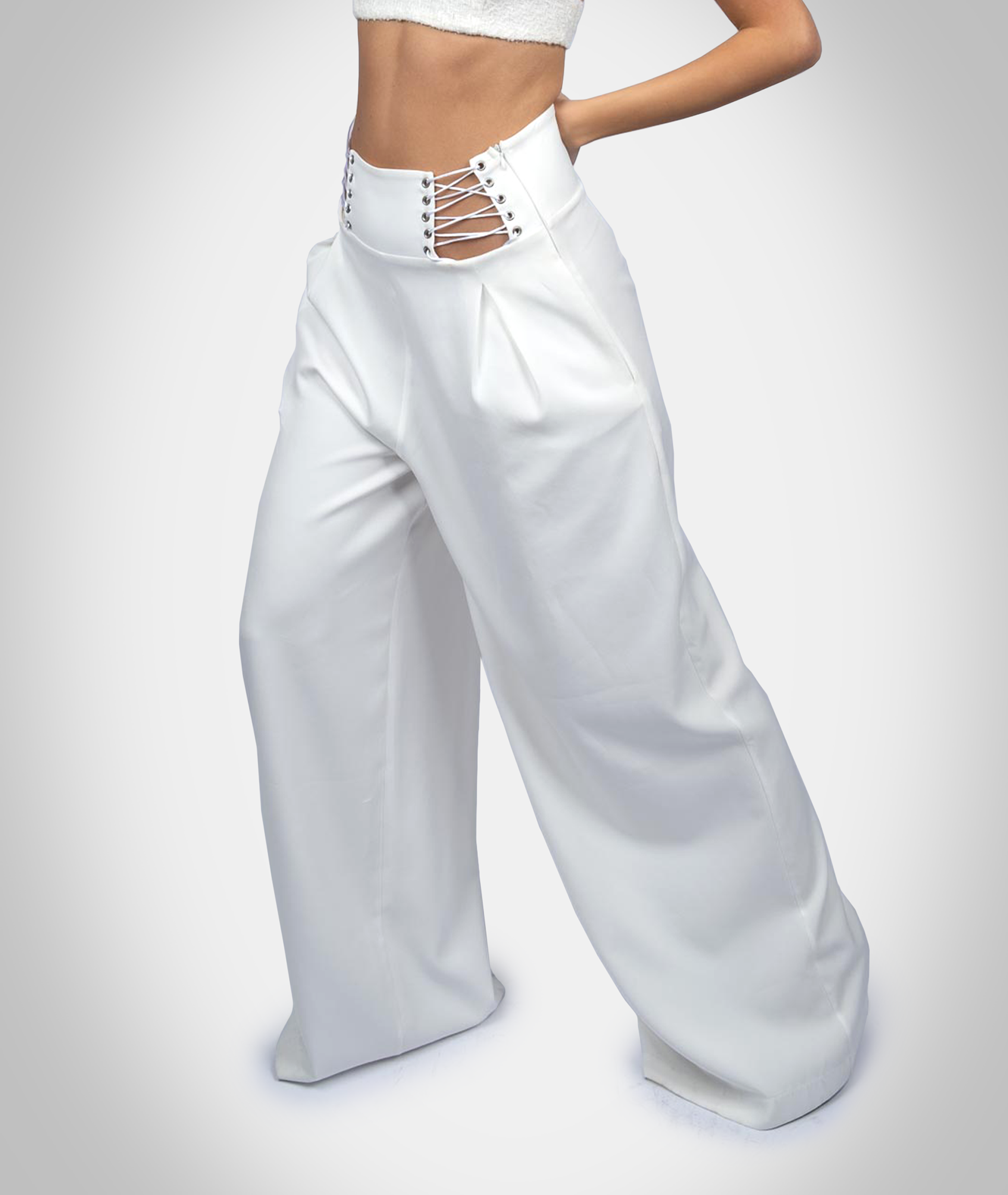 Indulge in the perfect blend of refinement and sensuality with these wide-leg pants designed to make a statement at any occasion. Tailored for elegance from high-quality fabric, these pants feature adjustable laces on the waist, offering both style and a customized fit that accentuates your curves and elongates your silhouette.