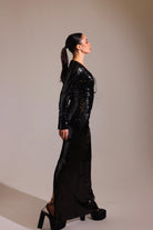 The Noir Allure Black High Shine Sequin Dress