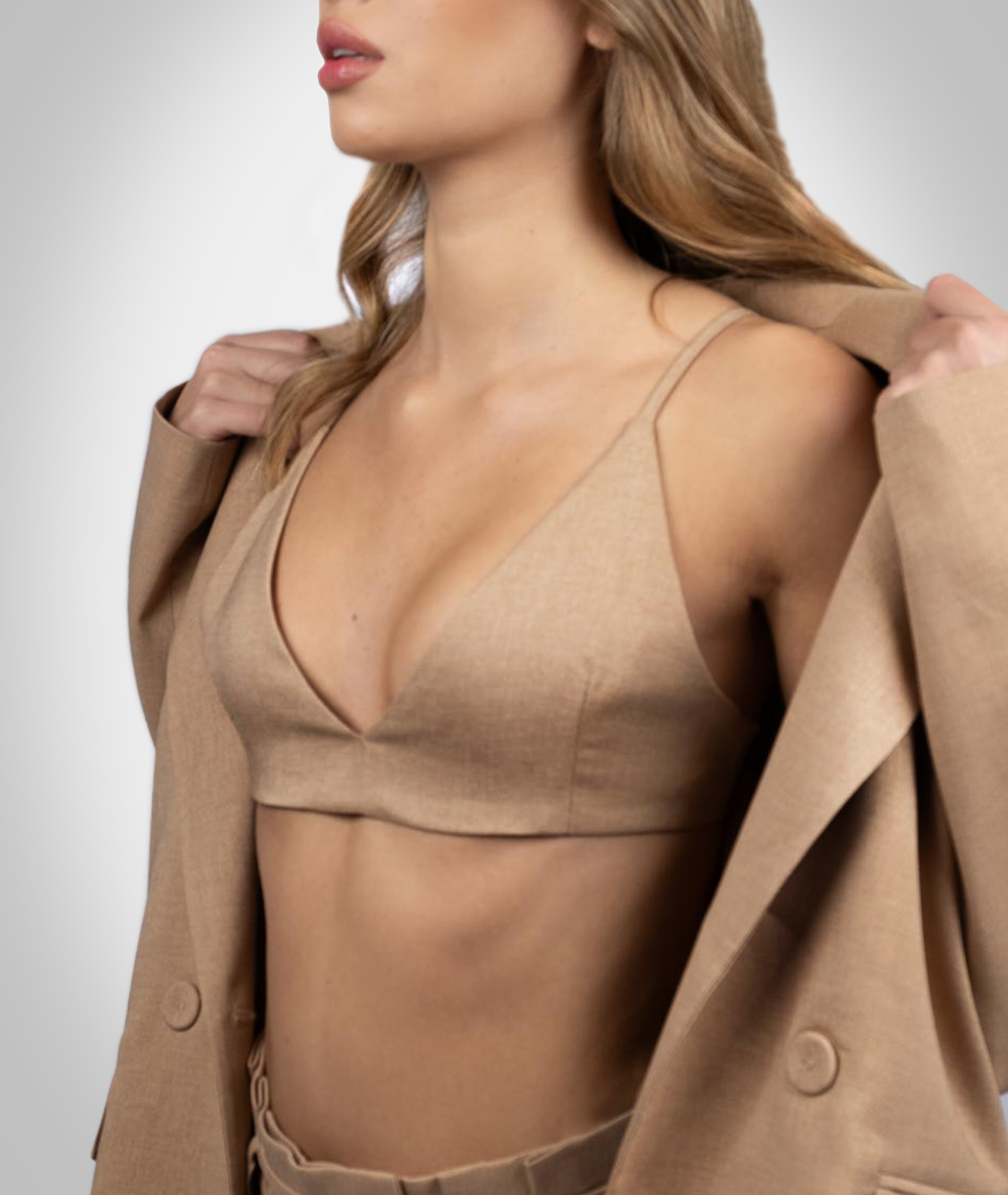 The triangular cups of the bralette offer a delicate and flattering shape.